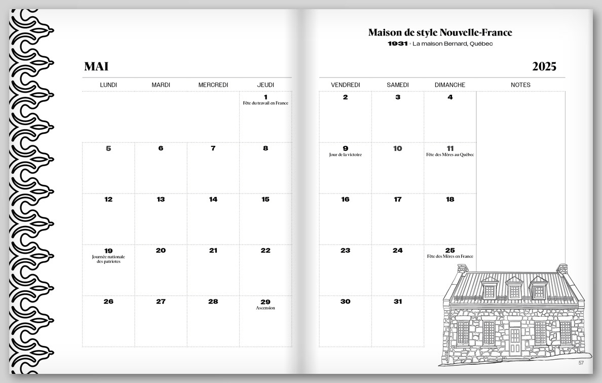 J’ai créé un Agenda des maisons du Québec à colorier que je mets à jour chaque année