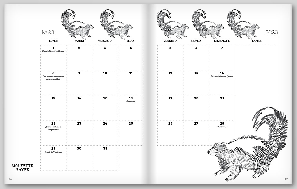 J’ai créé un Agenda de la faune du Québec à colorier que je met à jour à chaque année