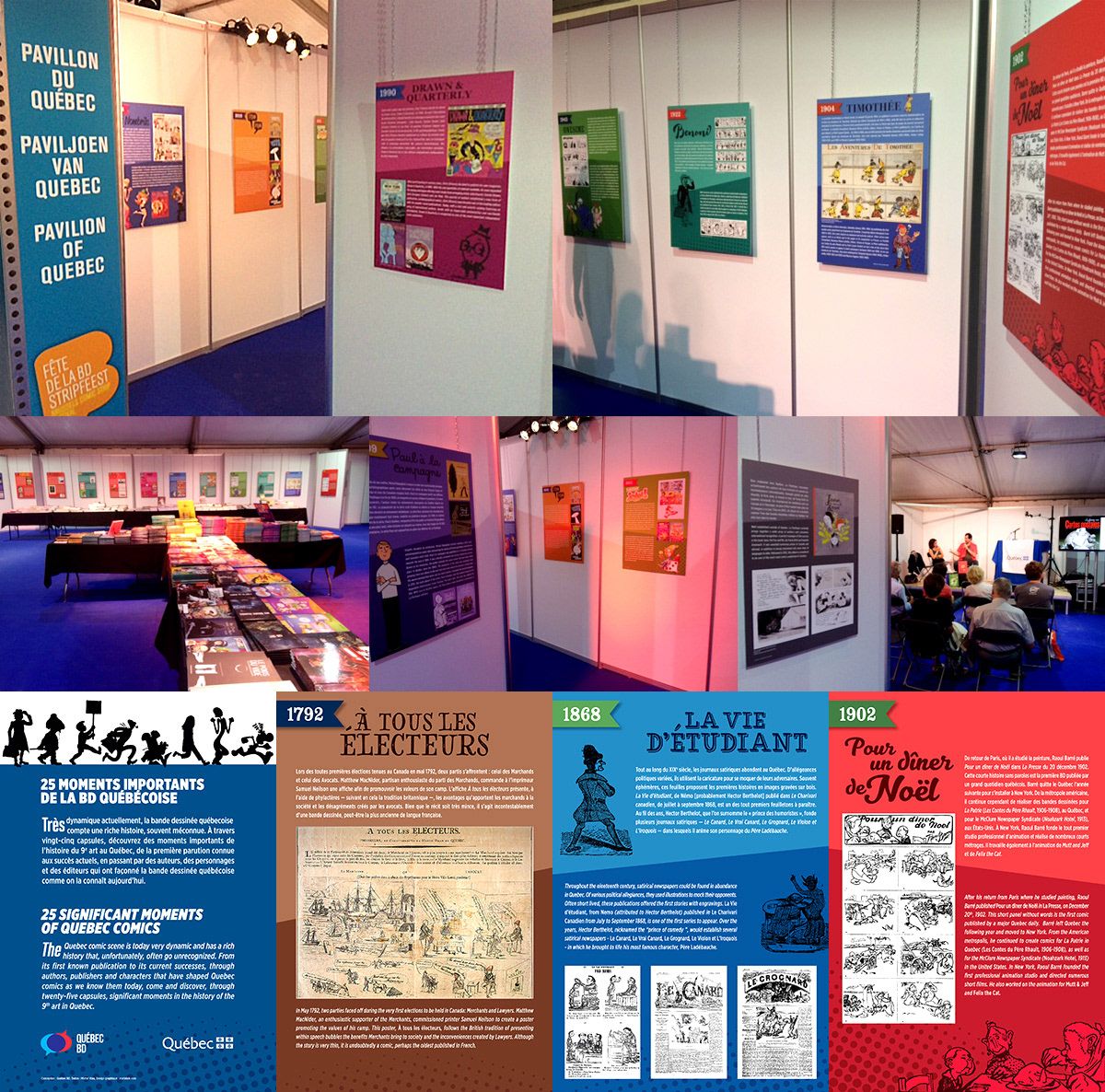 Exposition sur l’histoire de la bande dessinée québécoise présentée par Québec BD, dans le cadre de la fête de la BD 2016 à Bruxelle.