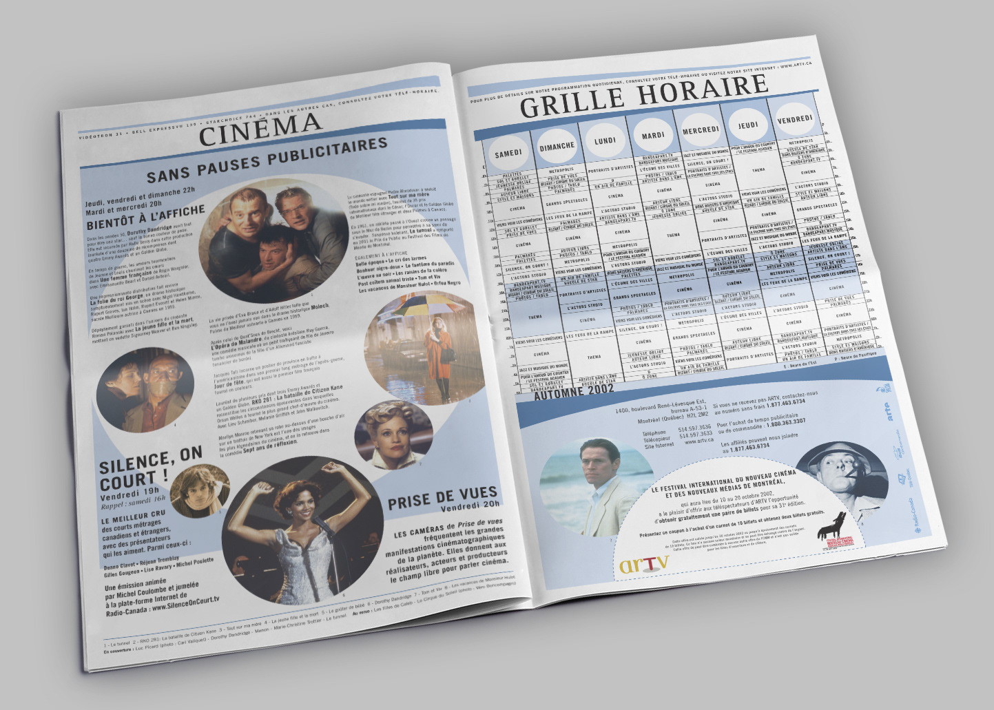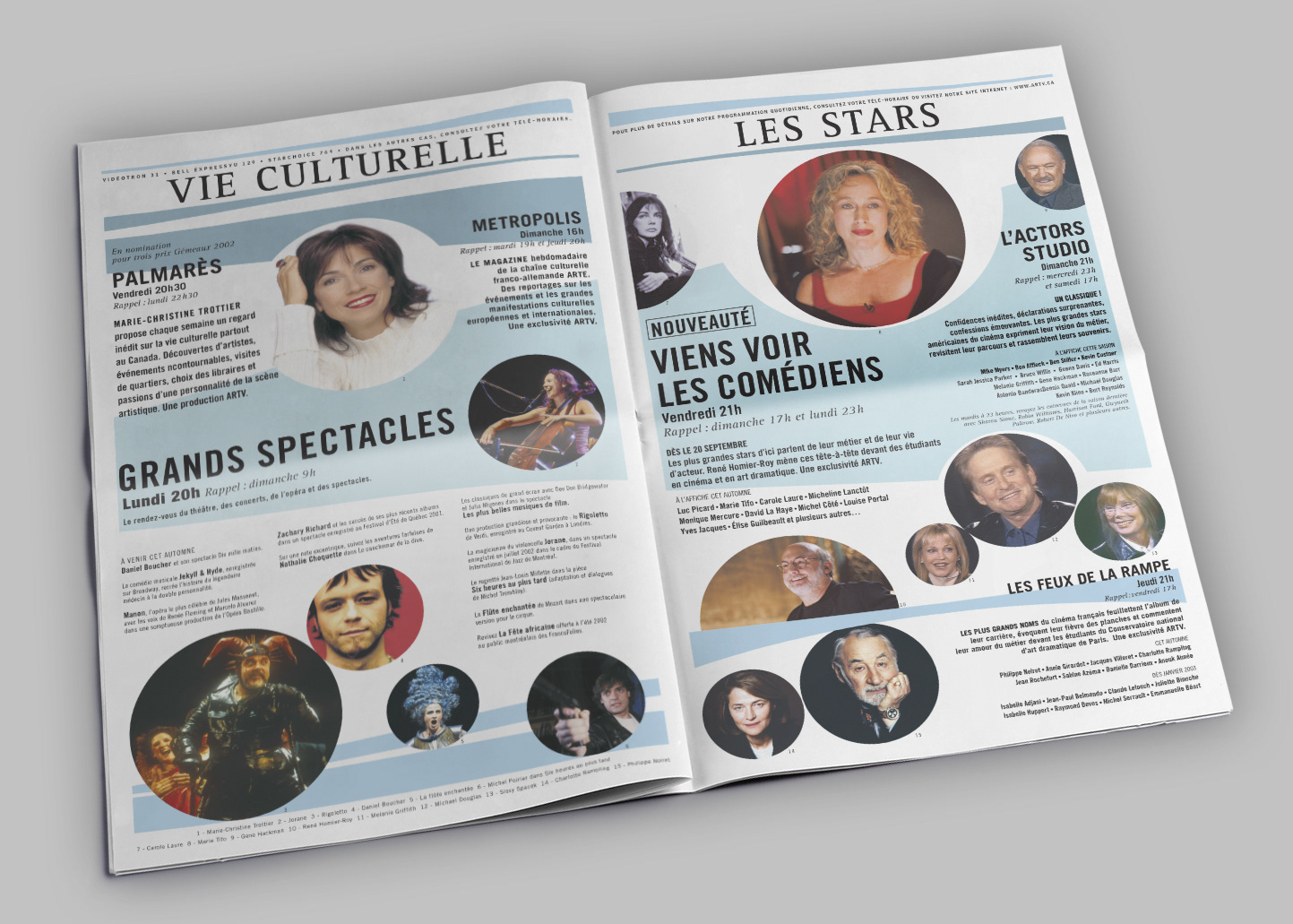 Journal de 8 pages sur la programmation automne 2002 de la chaîne ARTV