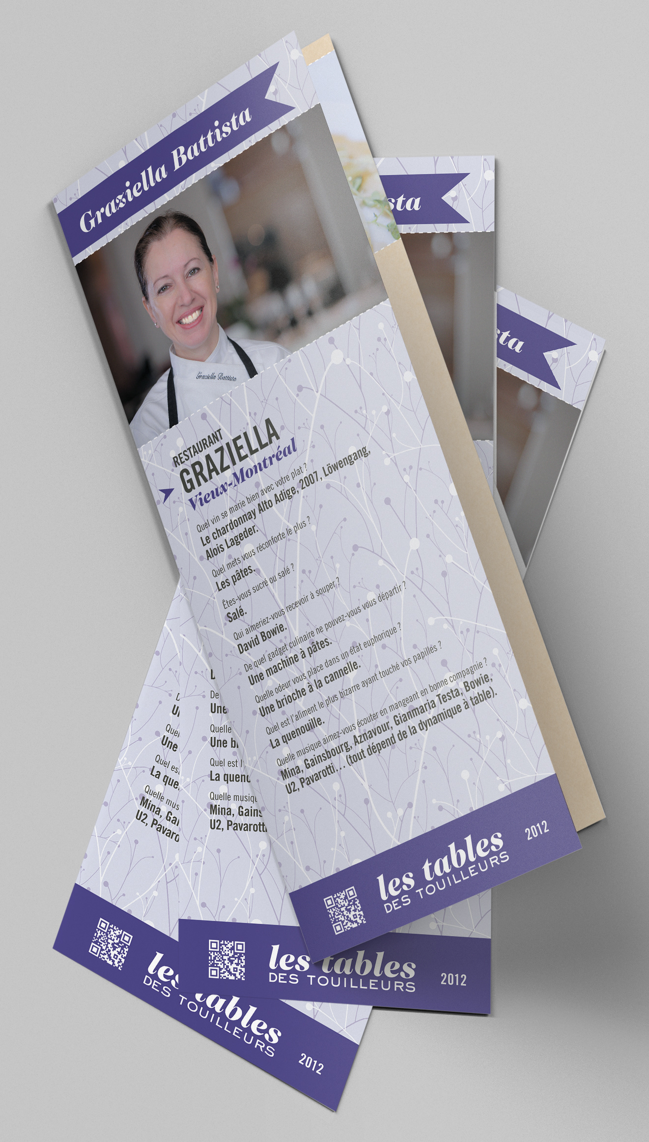 À l'occasion du Festival Montréal en lumière, ARTV vous invitait à découvrir huit des meilleurs chefs de la métropole sélectionnés par Sylvain Côté et François Longpré, animateurs de la série Les Touilleurs sur ARTV. Une exposition à l’ARTVSTUDIO et une version virtuelle de l’expositon sur le web a été préparée pour présenter les 8 portraits de chefs. J’ai eu la mission de concevoir l’image graphique de toute l’exposition.